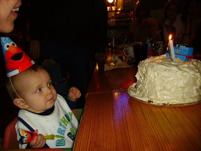 Elias and I sporting our cool Elmo party hats.