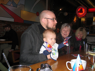 Elias and I sporting our cool Elmo party hats.
